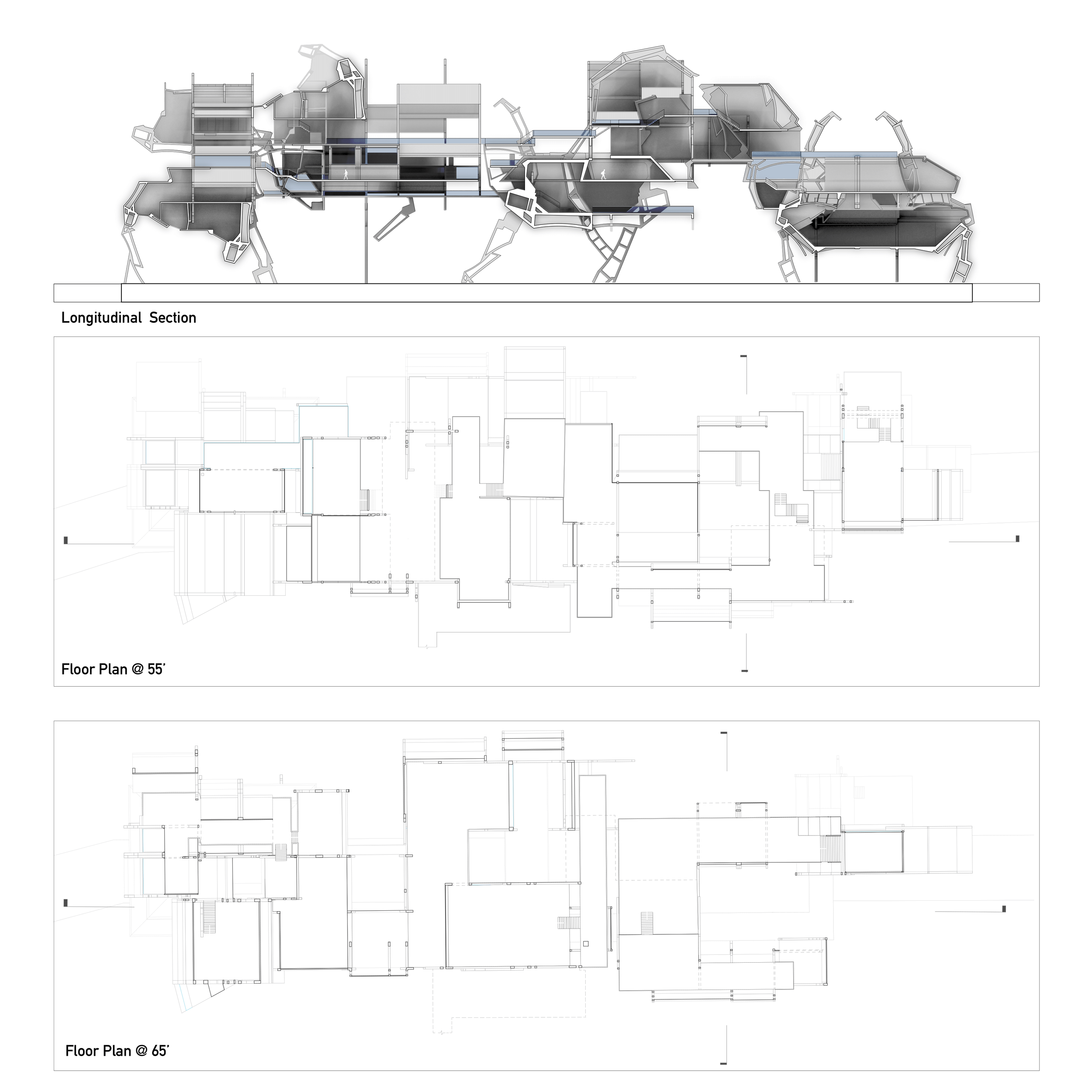 Original conceptual sections coagulated in collage form by implementing previously researched hydrophilic architecture in conjunction with the work of lebbeus woods