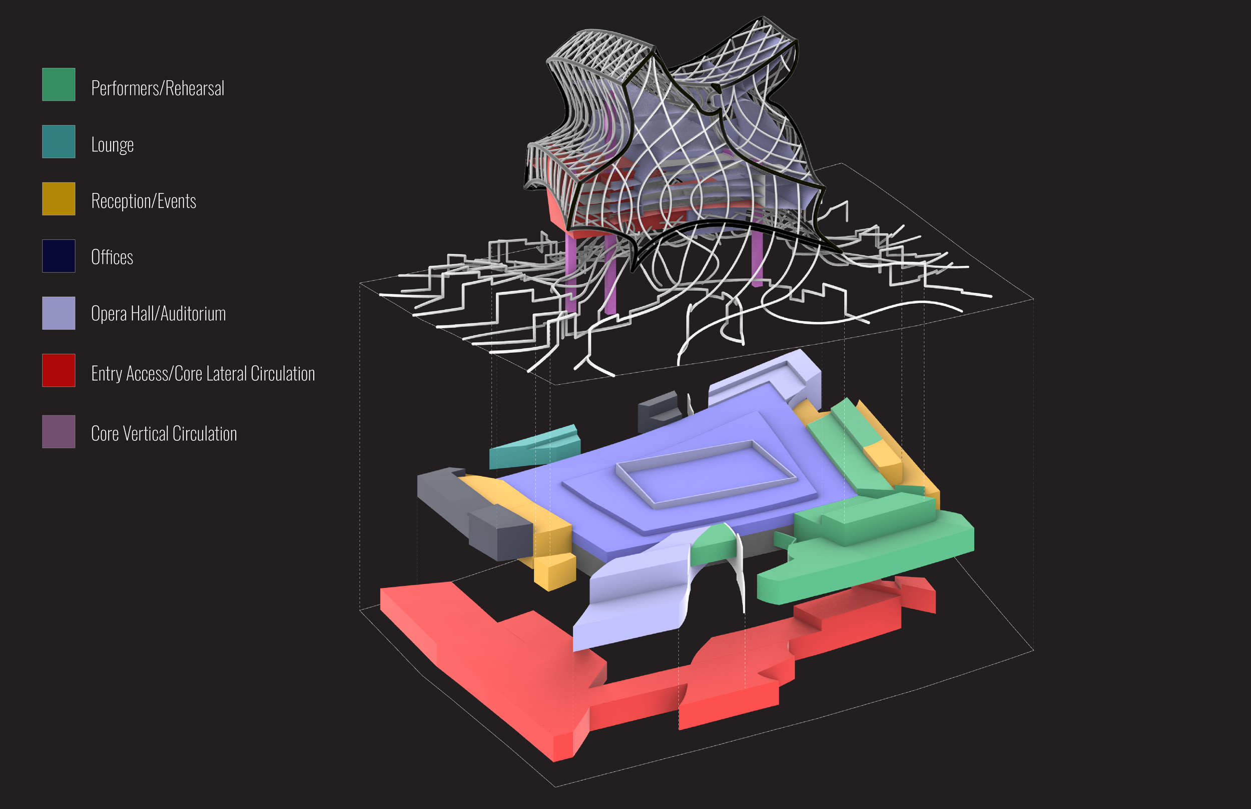 In the world of cartoons, specific actions are emulated through discreet animation choices. Each frame is drawn to communicate fluid motion that we recognize and identify but would sometimes be impossible to exist in the physical world. A character in a cartoon world can be limitless, and if we think of architecture like being a character in a city, whose forms communicate motion through delineation, and personality with bulges, digits, and protrusions, then they can become very similar. Objects or bodies in frames, or on a site, may move through space and communicate animation at any moment, or a static position in a series of movements.